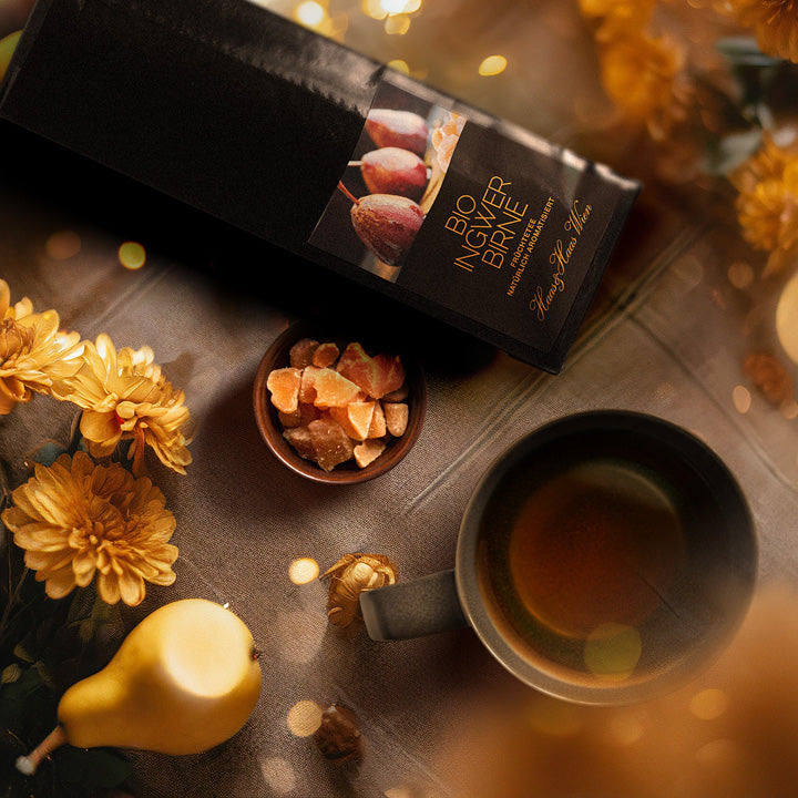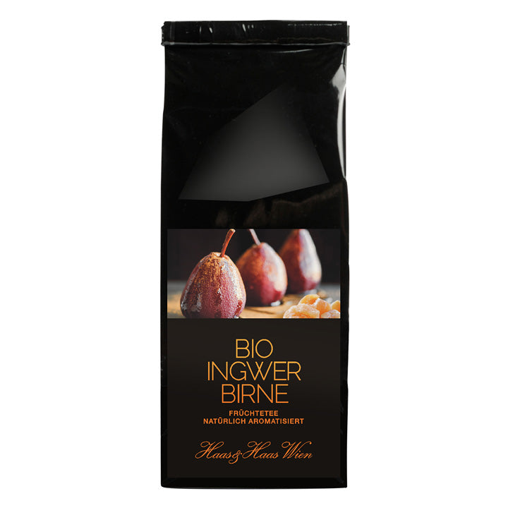 Früchteteemischung natürlich aromatisiert mit Birne-Ingwer-Geschmack.