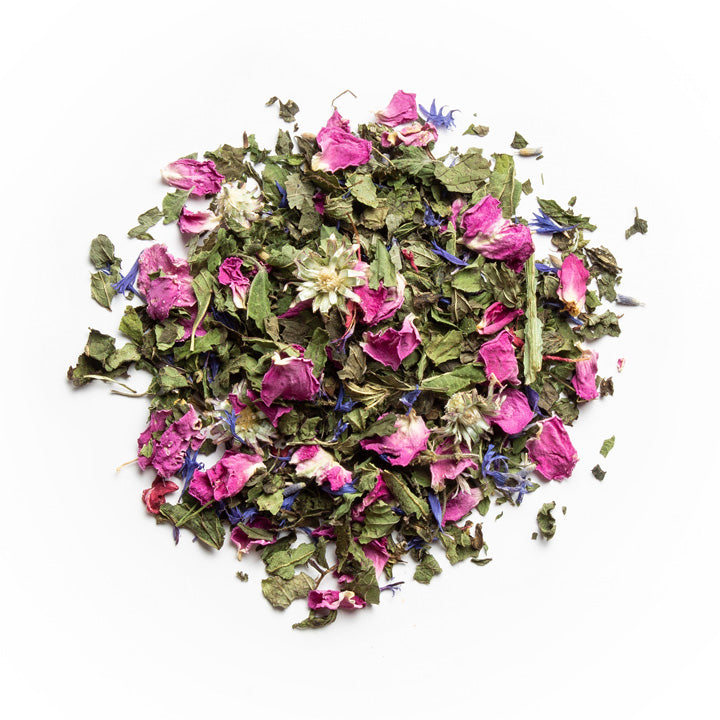 Zutaten Brennessel*, Zitronenmelisse*, Rosenblüten*, Krauseminze*, Lavendel*, Kornblumen*, Goldmelisse* *aus kontrolliert biologischem Anbau