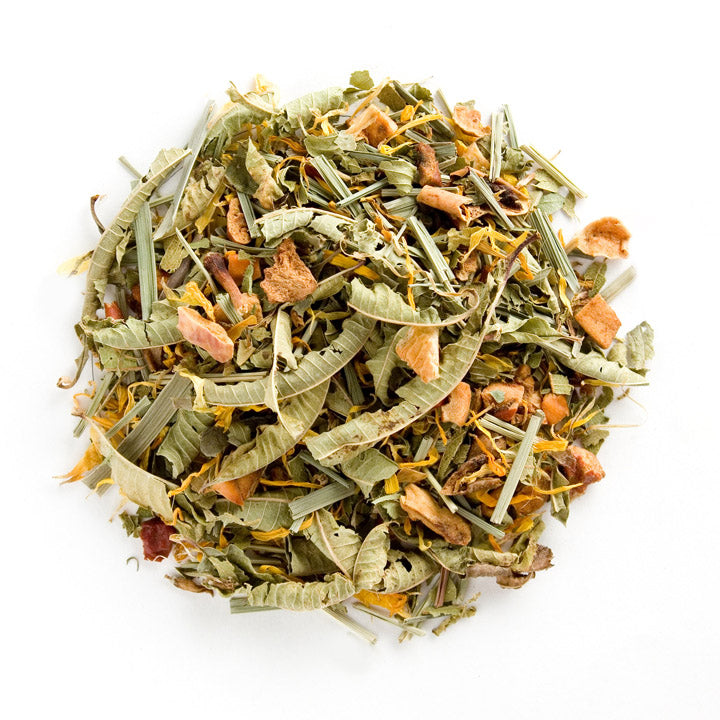 Zutaten Apfelstücke, Zitrusscheiben, Zitronenverbene, Lemongras, Ringelblumenblütenblätter, Zitronenmyrte