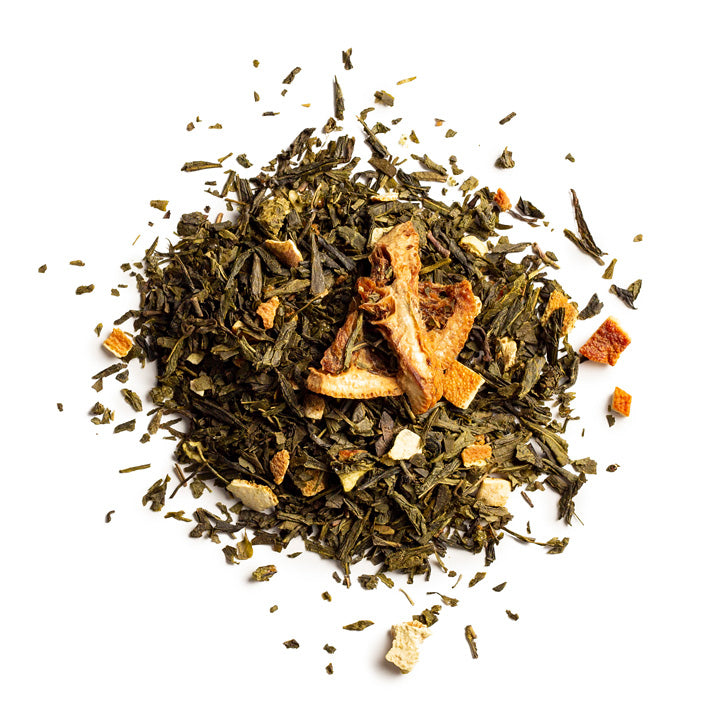 Aromatisierter Grüntee mit Orange-Karamell Geschmack. Dieser Tee nimmt Sie mit auf eine Reise, in der das Beste aus zwei gegensätzlichen Geschmackswelten in perfekter Harmonie miteinander verbunden ist: eine frische Orangenfruchtnote wird von cremigem Karamell umspielt. Die großen Frucht- und Karamellstücke in dieser Teekomposition lassen schon das Zubereiten zu einem herlich duftenden Erlebnis werden. Ein Grüntee wie gemacht für die kalte Jahreszeit.