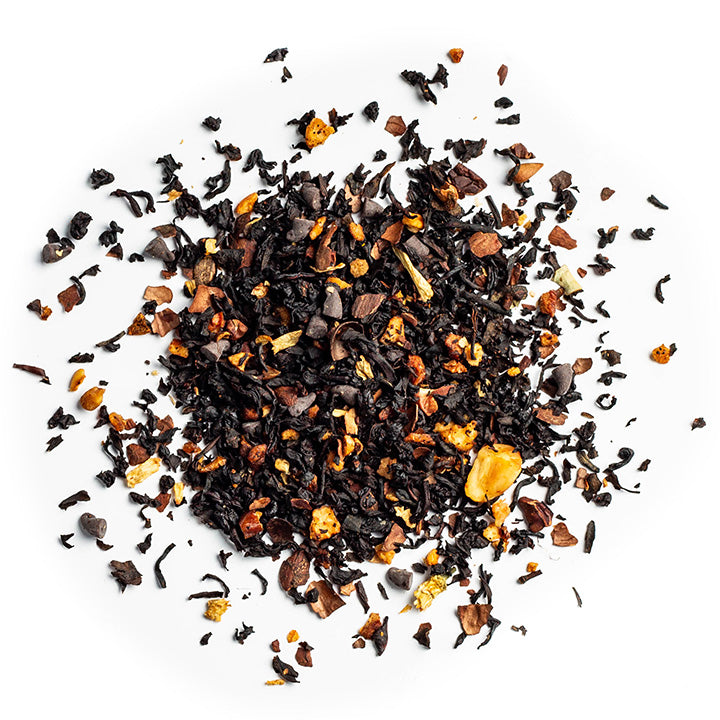 Schwarztee mit Haselnussstücken und Kakaostücken, aromatisiert mit Nuss-Kakao-Geschmack. Dieser charakterstarke Schwarztee wird mit der perfekten Mischung Kakao & Haselnuss geschmacklich abgerundet – einfach Genuss pur. Feiner, sahniger Kakaogeschmack mit feingerösteten Haselnusskrokantstücken