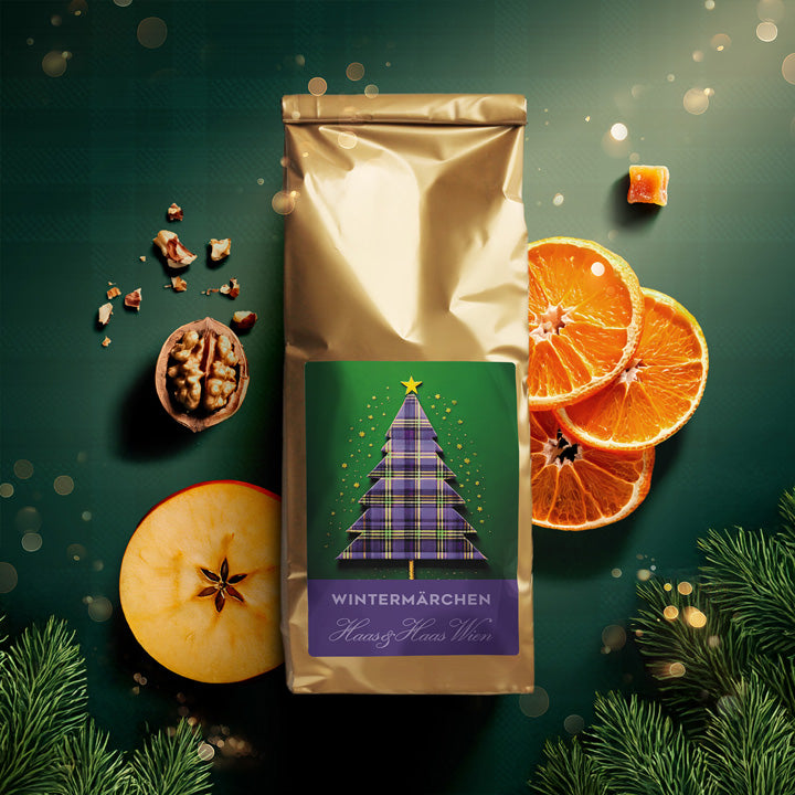 Früchteteemischung natürlich aromatisiert mit Apfel-Mandarine-Geschmack. Es ist der Duft des Winters, wenn fruchtige Mandarinen geschält werden und ihr Aroma im ganzen Haus verströmen. Unser "Wintermärchen" fängt dieses Fruchterlebnis perfekt ein und ergänzt es mit feinen Ingwer- und Nussnuancen - dieses Teemärchen ist nicht zu schön, um wahr zu sein!
