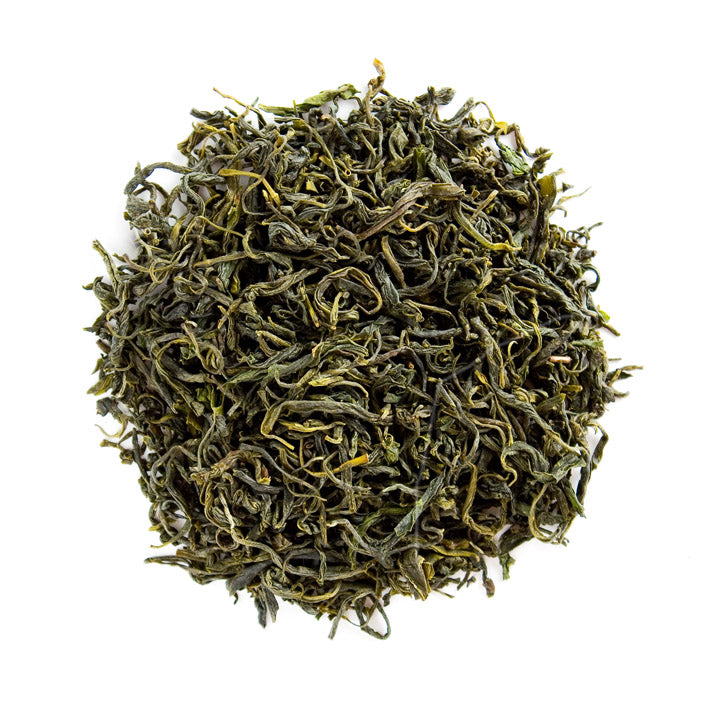 Bio Grüntee. Beheimatet in der Provinz Zhejiang, wo Anfang April in Höhenlagen von 500 bis 600m geerntet wird. Das Anbaugebiet liegt nahe dem Berg „Jiu Long Shan“ (Berg der neun Drachen) gelegen. Aufgrund seiner „wilden“ Blattstruktur wird er auch als „Criss Cross“ kreuz und quer bezeichnet. Das dunkelgrüne, in sich gedrehte Sinensisblatt überrascht in der Tasse mit einem feinen Duft und einer Farbe, die an vollreife, leuchtende Zitronen erinnert. Zart und weich im Geschmack, dennoch sehr aromatisch.