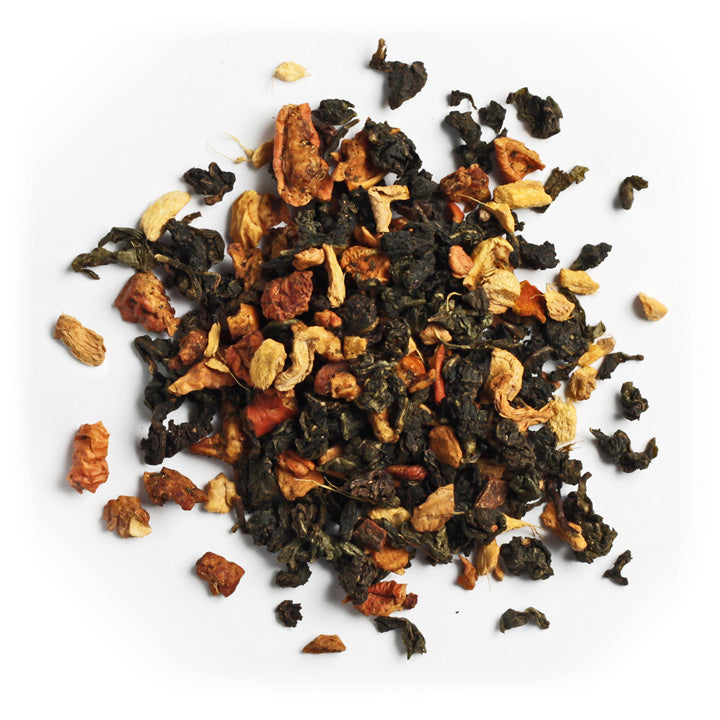 Eine Teemischung auf lieblich-blumiger Oolong-Basis verfeinert mit Gewürzen wie Zimt, Kardamom, Ingwer und Kurkuma und dem typischen Geschmack süßen Ahornsirups.