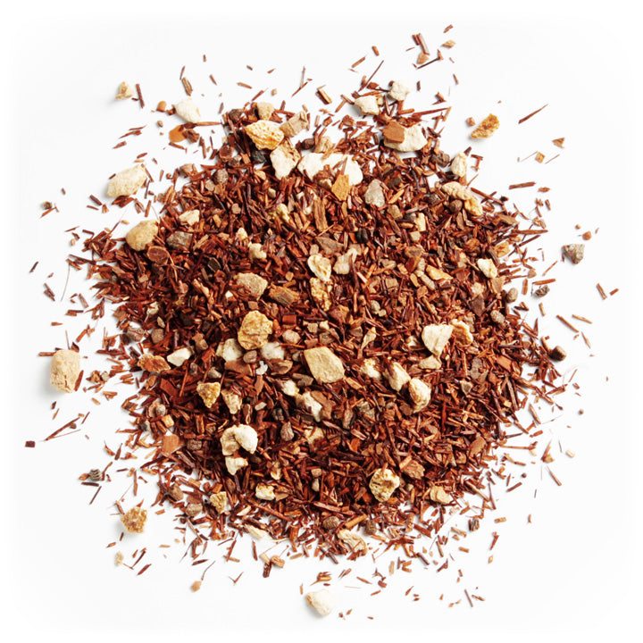 Naturbelassene Rooibos-Tee-/Gewürzmischung. Koffeinfrei und intensiv-würzig im Geschmack - der von Natur aus süßliche Geschmack des Rooibos verleiht diesem Chai eine komplexe Reichhaltigkeit und wohltuende Süße.