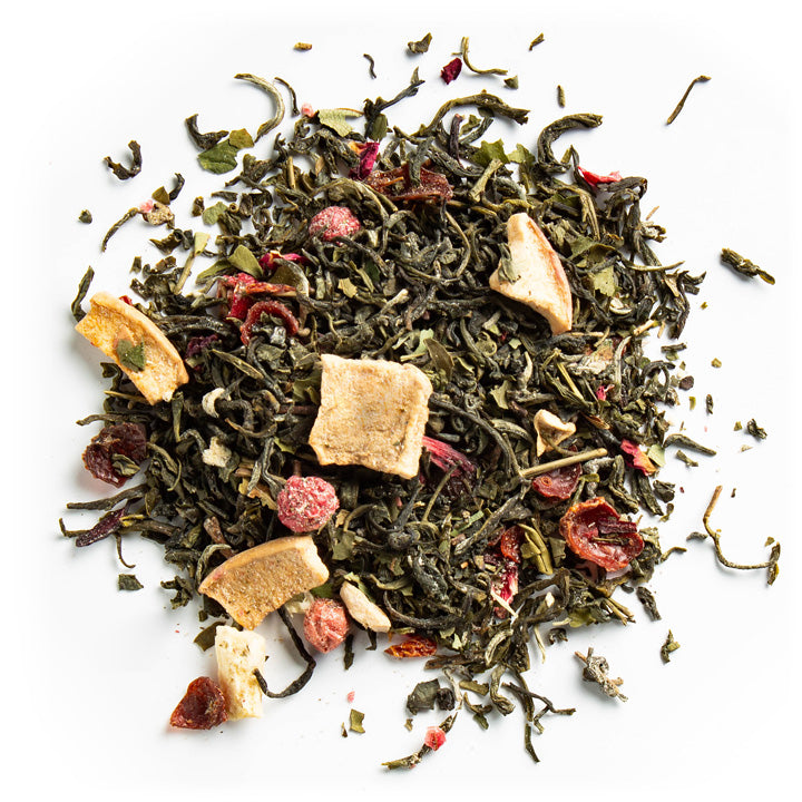 Aromatisierte Weißtee,- Grüntee-/Früchtemischung mit Mango-Ananas-Geschmack. Ein Eistee, der nach Sonnenuntergang schmeckt: feiner weißer und grüner Tee trifft auf reife Mango, süße Ananas und einen Hauch Hibiskus. Fruchtig, leicht und mit floralen Noten – perfekt für laue Abende auf der Terrasse oder spontane Sonnenuntergänge auf dem Balkon. Eiskalt serviert: ein Sundowner ganz ohne Alkohol, aber mit jeder Menge natürlicher Zutaten und Sunset Vibes.
