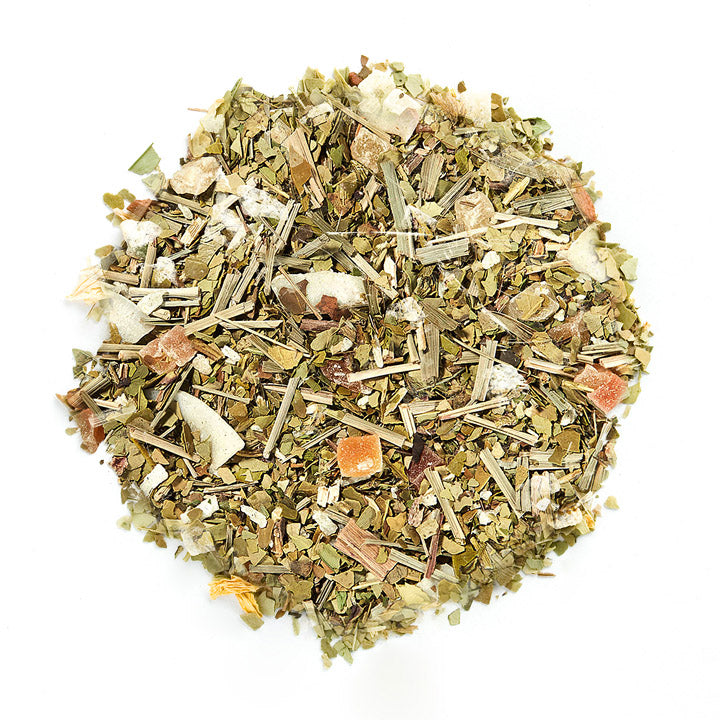 Zutaten: Mate grün (51%), Papayawürfel (Papaya, Zucker), Ananaswürfel (Ananas, Zucker), Zitronengras, Kokosraspeln, Kokoschips, natürliches Aroma.