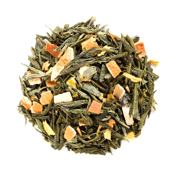Grüntee aromatisiert mit Orangen-Geschmack. Dieser Grüntee hat eine lieblich fruchtige Orangennote, die zusammen mit dem chinesischen Grüntee für ein belebendes Geschmackserlebnis sorgt. Tipp: Nutzen Sie das bereits aufgegossene Blatt für einen zweiten Genuss - es ergibt mit kaltem Wasser übergossen einen zart-fruchtigen Cold Brew Tee.