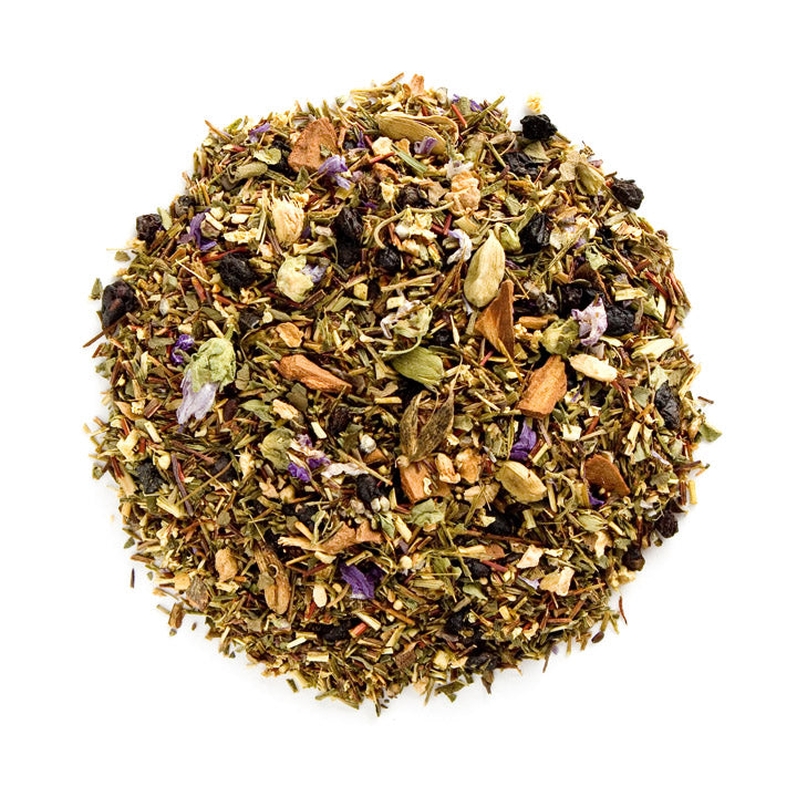 Zutaten Grüner Rooibos, Holunderbeeren (13%), Tulsikraut, Zimtrinde, Ingwerstücke (6%), Holunderblüten (6%), Kardamom, Aroma, geschroteter Pfeffer, Malvenblüten