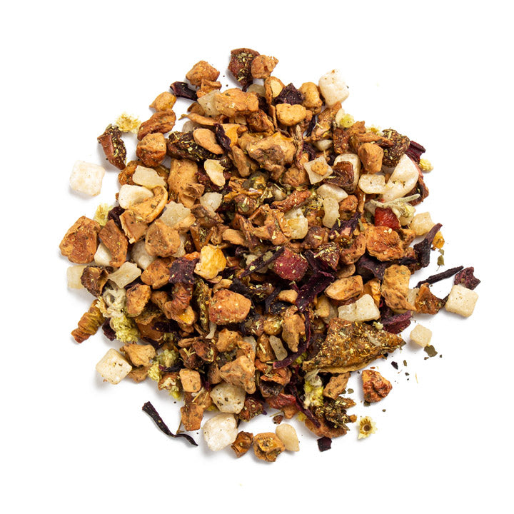 Aromatisierte Früchteteemischung mit Holunder-Melone-Geschmack.