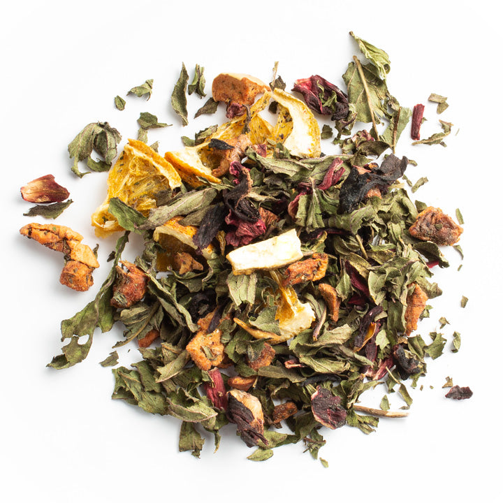 Aromatisierte Früchteteemischung mit Erdbeer-Minze-Geschmack.
