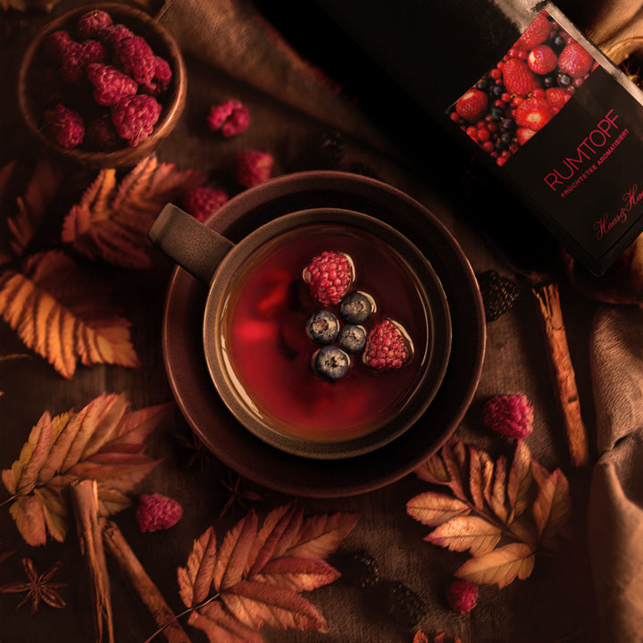 Aromatisierte Früchteteemischung mit Beeren-Rum-Geschmack.