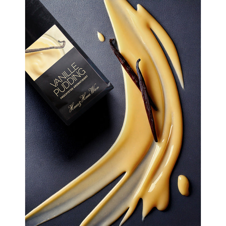 Aromatisierte Früchtemischung mit Vanille-Sahne-Geschmack. Dieser Tee ist von Vanillepudding inspiriert und verführt schon beim Zubereiten mit seinem lieblich süßen Duft. Ein Traum von Vanille mit etwas Krokant und Apfelfrucht erwartet den Liebhaber süß-cremiger Früchtetees dann in der heißen Tasse, und lässt von der Vorweihnachtszeit träumen.