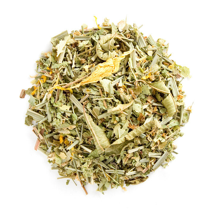 Zutaten Zitronenverbene, Lemongras, Lindenblüten, natürliches Zitrusaroma (Limettenöl), Zitrusschalen, Sonnenblumenblütenblätter, Ringelblumenblütenblätter