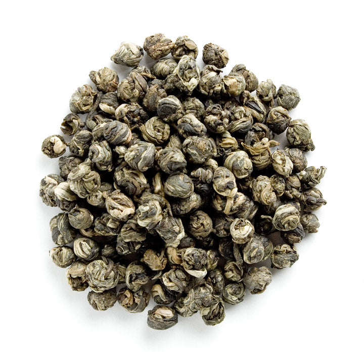Das noch feuchte, frische Blattgut wird bis zu sechsmal mit frischen, fein duftenden Jasminblüten vermengt, gesiebt und per Hand zu kleinen Perlen gerollt.