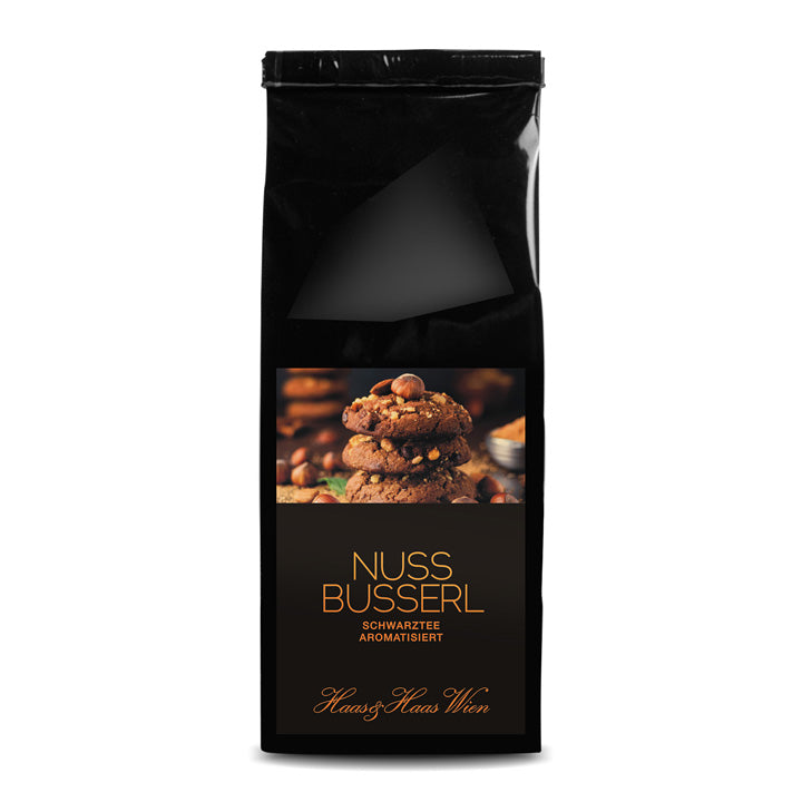 Schwarztee mit Haselnussstücken und Kakaostücken, aromatisiert mit Nuss-Kakao-Geschmack. Dieser charakterstarke Schwarztee wird mit der perfekten Mischung Kakao & Haselnuss geschmacklich abgerundet – einfach Genuss pur. Feiner, sahniger Kakaogeschmack mit feingerösteten Haselnusskrokantstücken