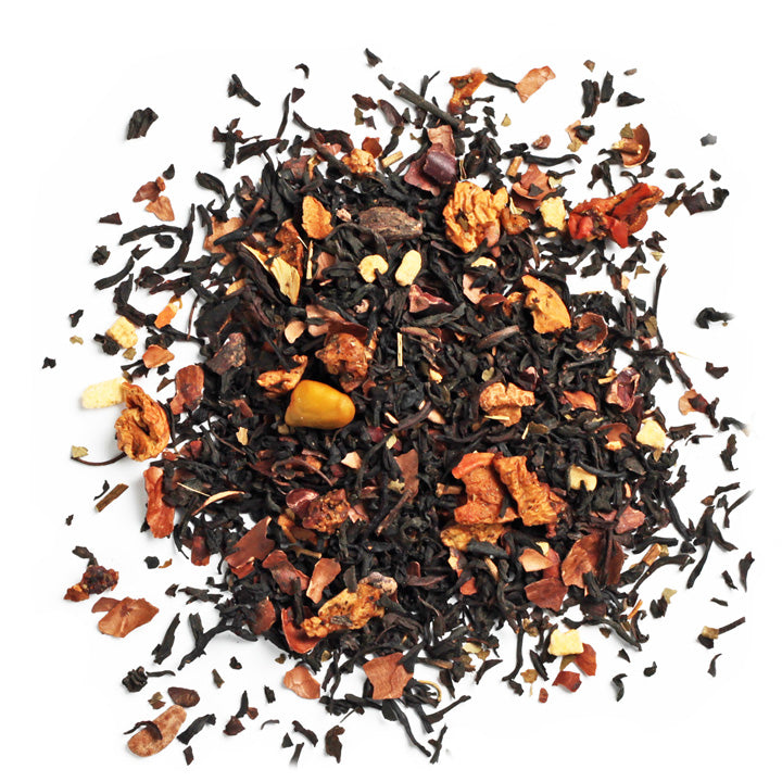 Schwarzer Tee (55%), Apfelstücke, Kakaoschale, Aroma, süße Brombeerblätter, Kakaobruch, weiße Schokoladenplättchen (Zucker, Kakaobutter, MILCHPULVER, Dextrose, Emulgator: SOJA-Lecithin), Schokoladenplättchen (Zucker, Kakaomasse, Kakaopulver, Emulgator: SOJA-Lecithin), PISTAZIEN | Durchschnittliche Nährwerte je 100ml Fertiggetränk*:
